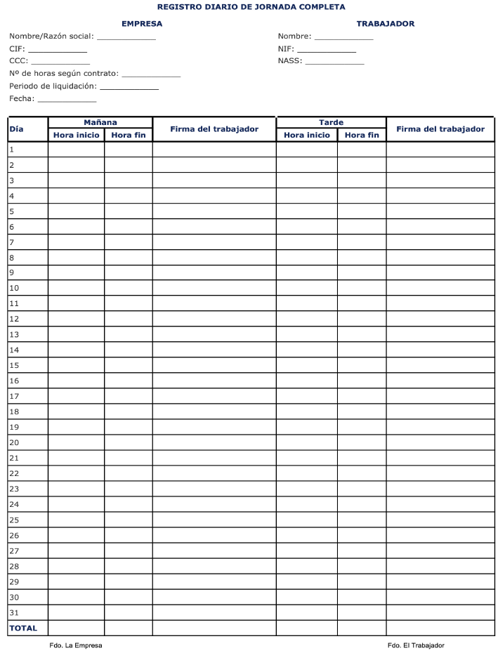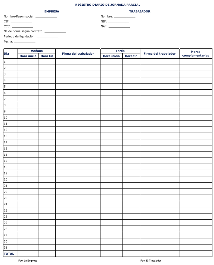 Por lo que se refiere al registro de la jornada diaria, la empresa podrá establecer un método analógico o digital de fichaje que garantice un registro diario de jornada de manera fidedigna y, en su defecto, la empresa facilitará a cada trabajador un modelo de registro en papel, donde conste el inicio y final de la jornada diaria de cada trabajador, tanto continuada, como en su caso, partida, así como para los trabajadores a tiempo parcial. Todo ello sin perjuicio de la flexibilidad horaria.