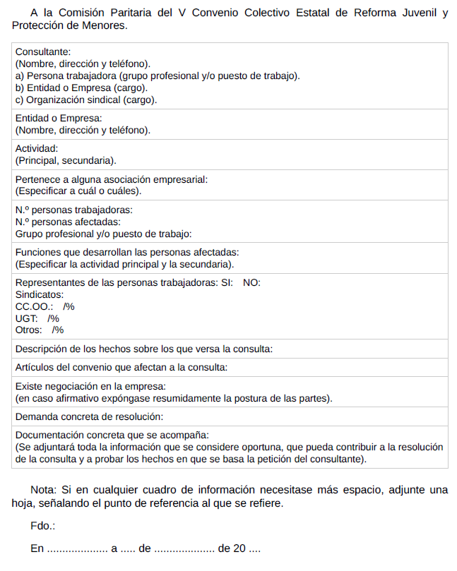 ANEXO 3.- Formulario de consulta a la Comisión Paritaria del convenio colectivo