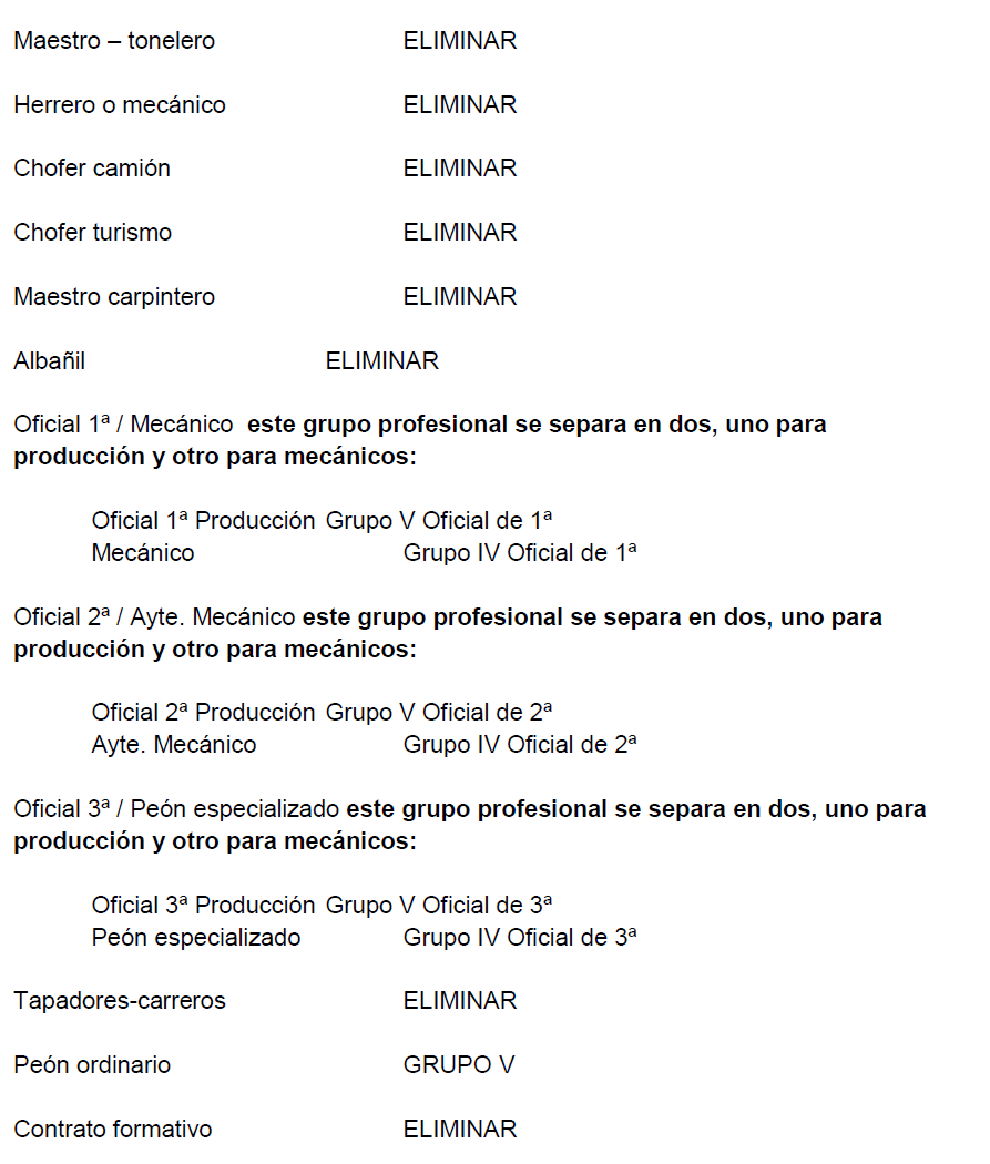 En esta categoría profesional se incluyen a título enunciativo todas aquellas actividades que por analogía son equiparables a las siguientes: