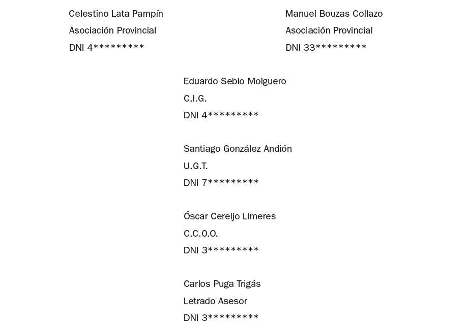 – D. Celestino Lata Pampín (DNI: 4*********).