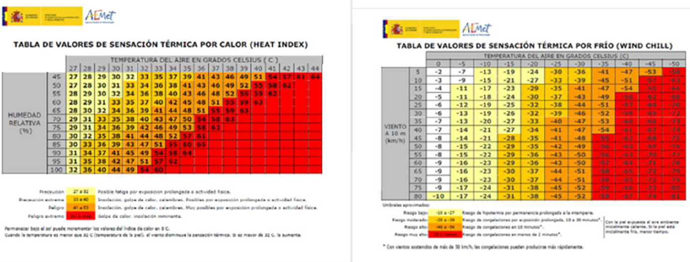 8. Tablas AEMET, Sensación térmica.