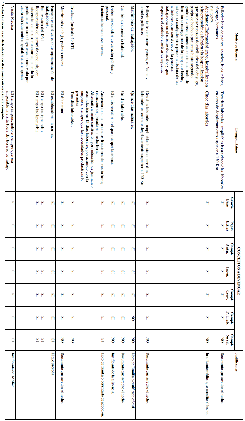 ANEXO I – CUADRO DE PERMISOS Y LICENCIAS.