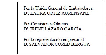 Se acuerda designar a D. Salvador Cored Bergua, representante de la Asociación de Empresarios de la Madera de la provincia de Huesca (ADEM), para realizar ante la autoridad laboral todo tipo de gestiones, trámites y el registro en el REGCON de la presente Acta de la comisión paritaria con sus correspondientes Tablas Salariales.
