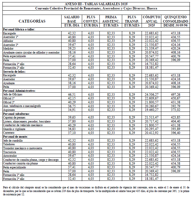 CONVENIO COLECTIVO PROVINCIAL DE REMATANTES, ASERRADORES, ENVASES Y CAJAS DIVERSAS HUESCA 2023 – 2025.