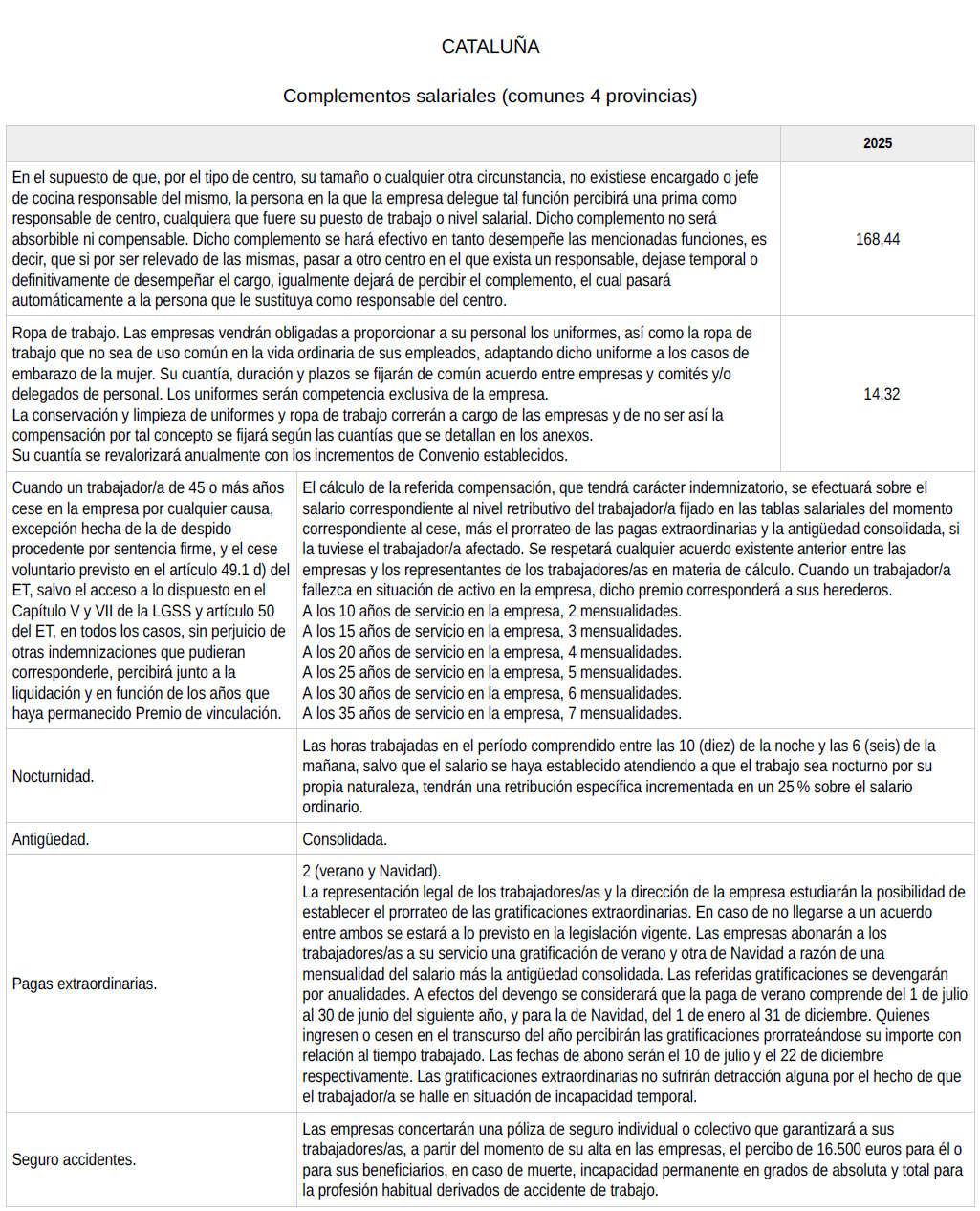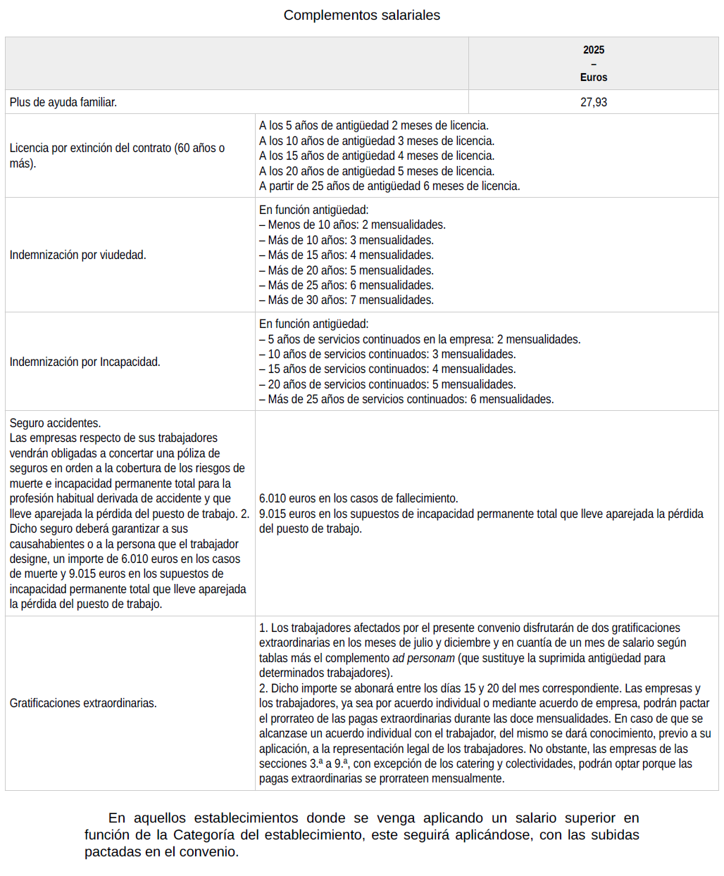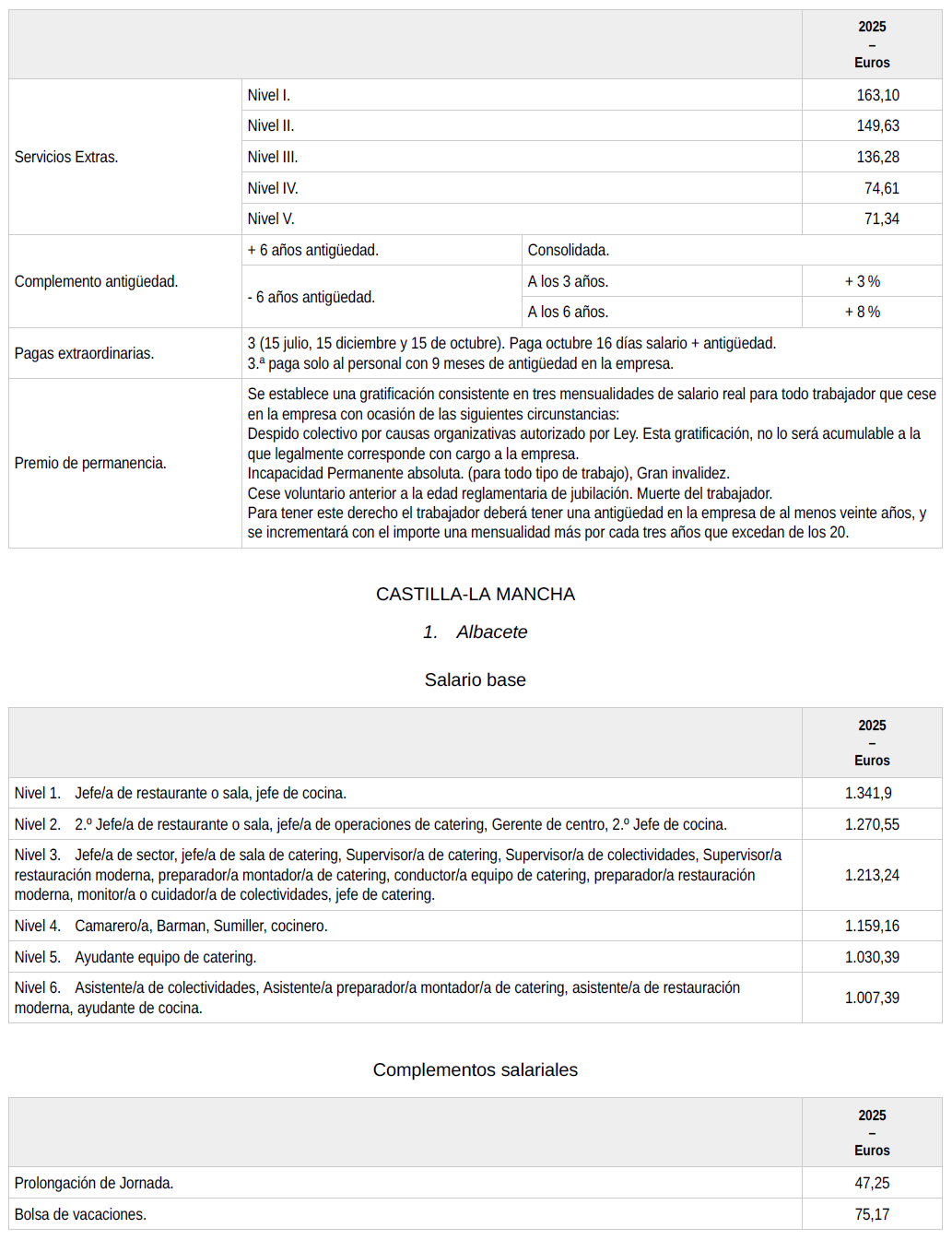 Servicios Extras Tablas estatales, en aquellos convenios provinciales donde existan tablas para servicios extras, estas se mantendrán en sus cuantías hasta que se produzca la homogeneización.