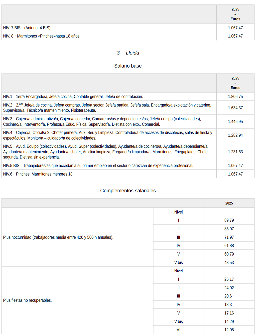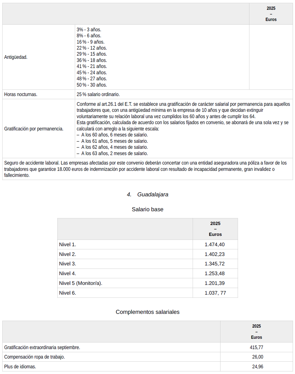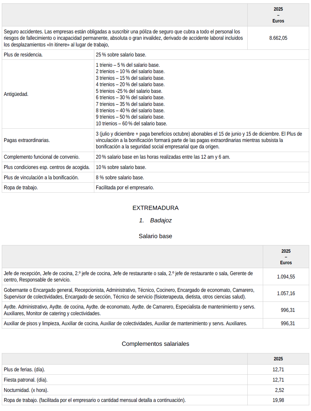 ANEXO.- Tablas salariales año 2025