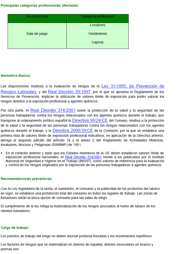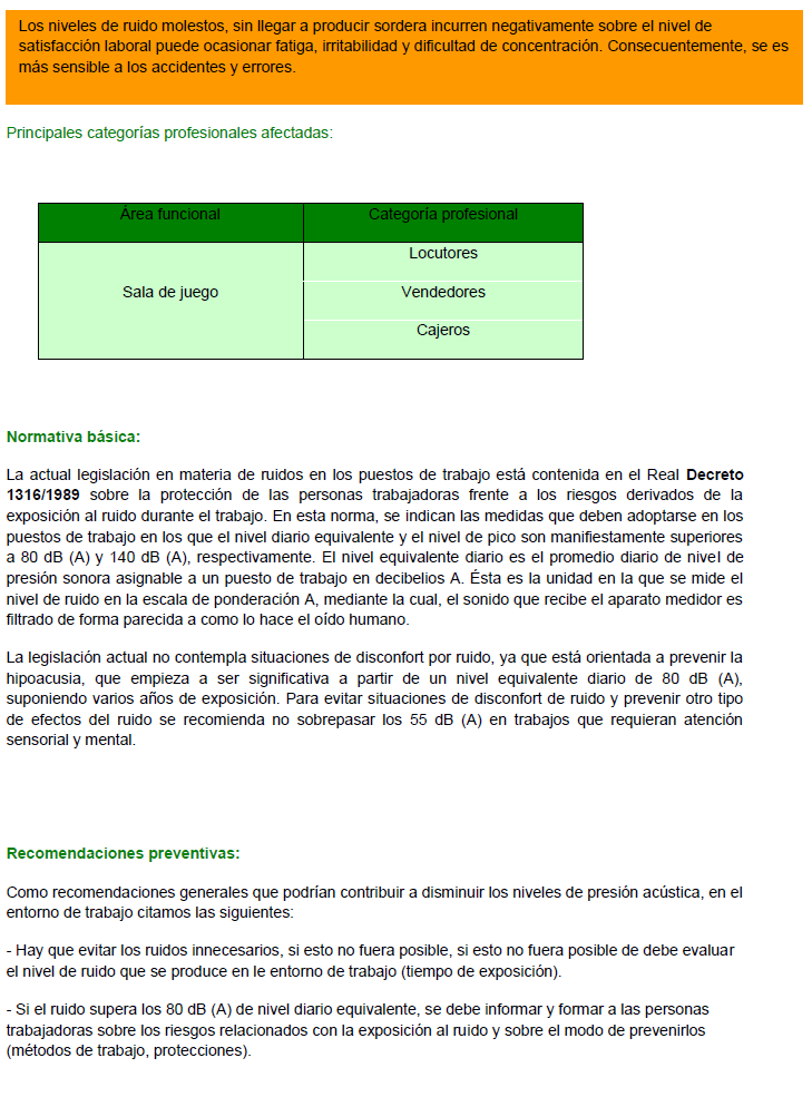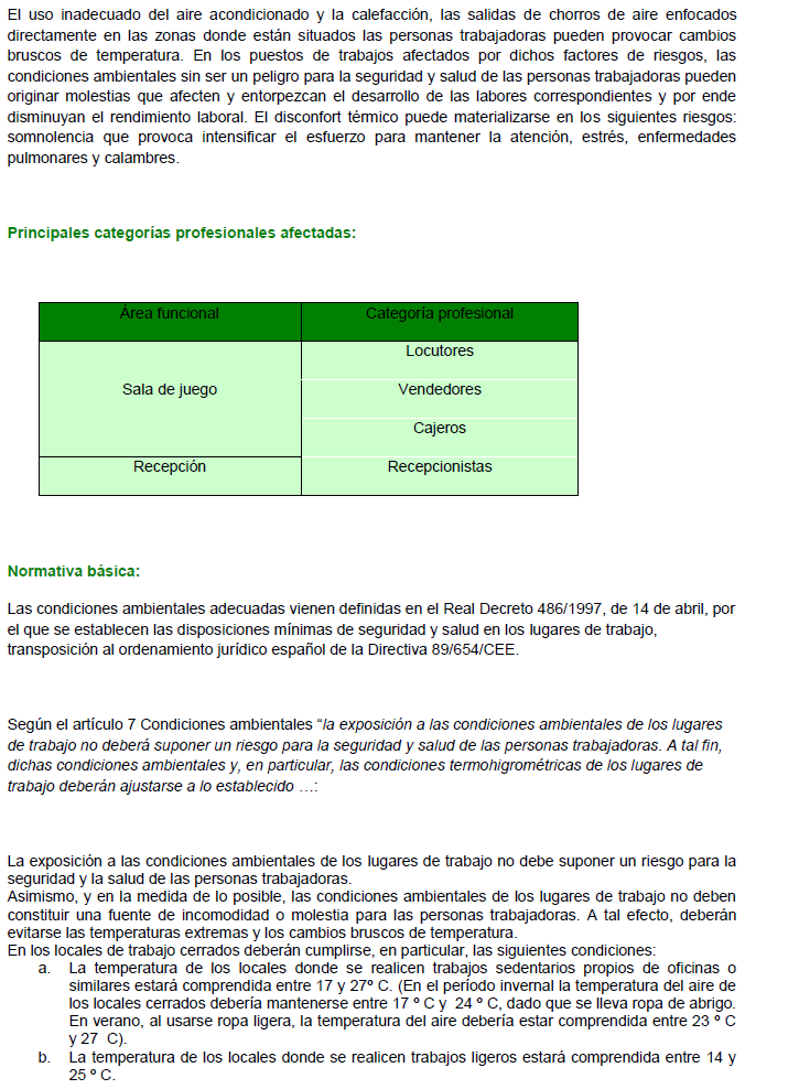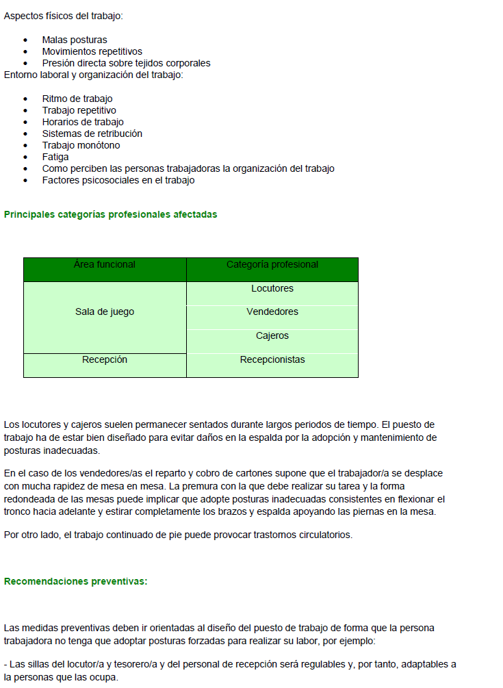ANEXO I. Fuente: Proyecto IS-058/2004 financiado por la Fundación de Prevención de Riesgos Laborales, realizado por la Confederación Española de Juego (CEJ) y los Sindicatos UGT y Comisiones Obreras.