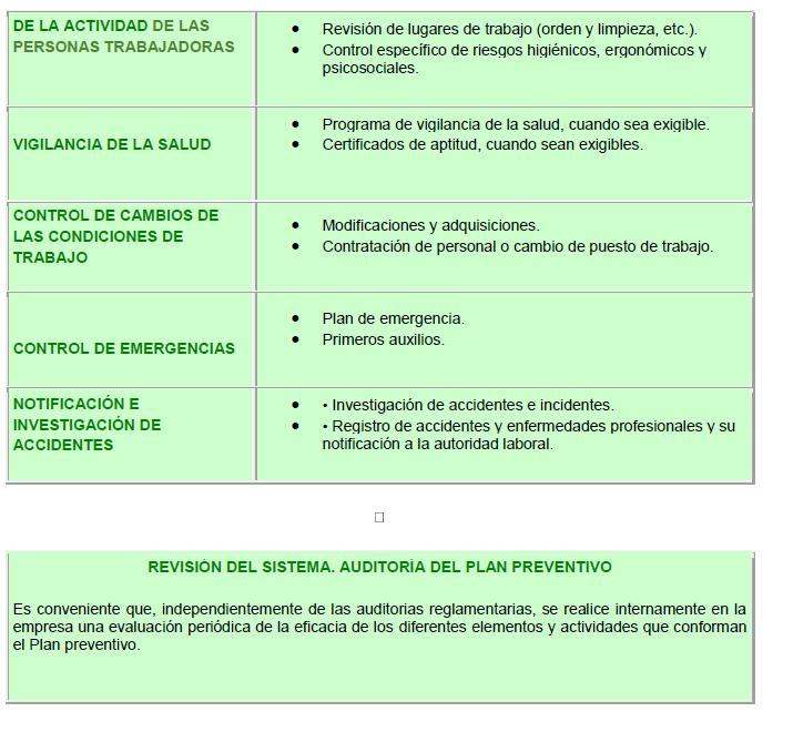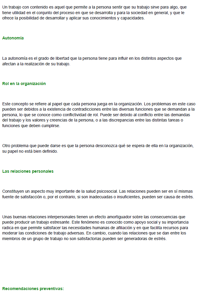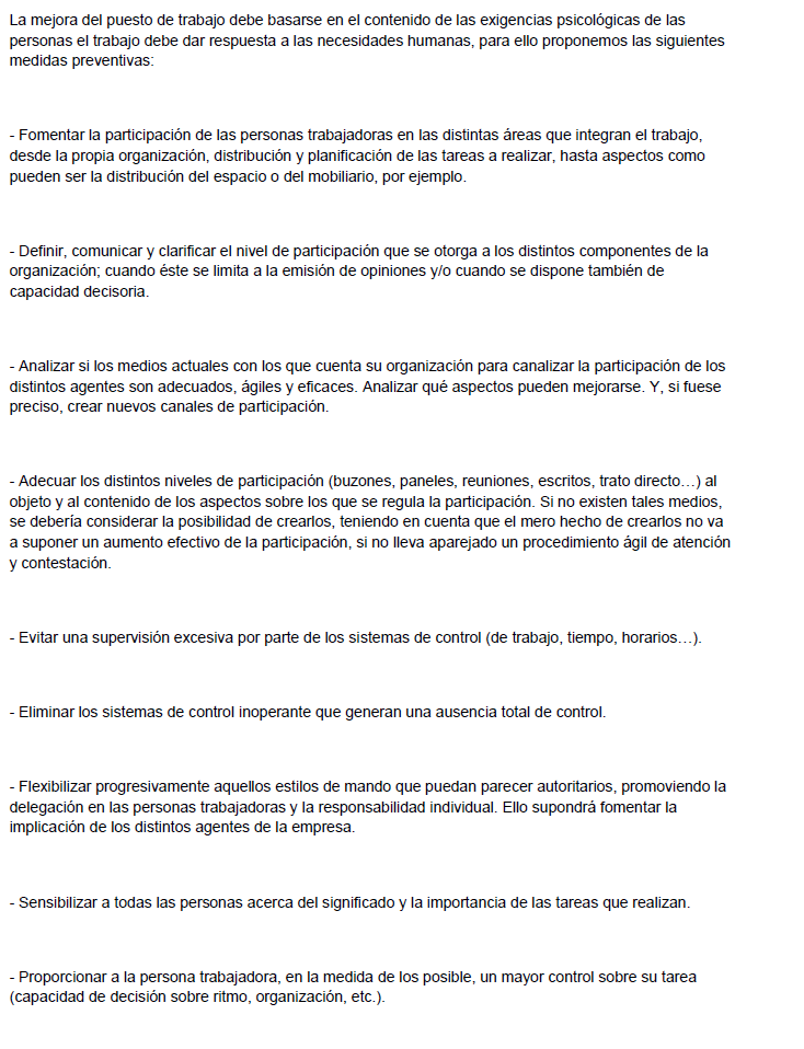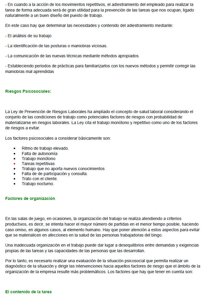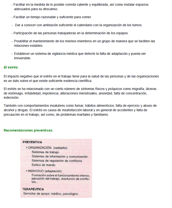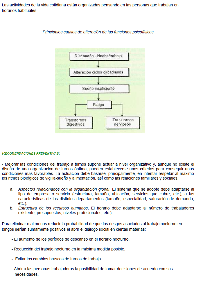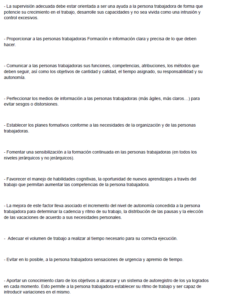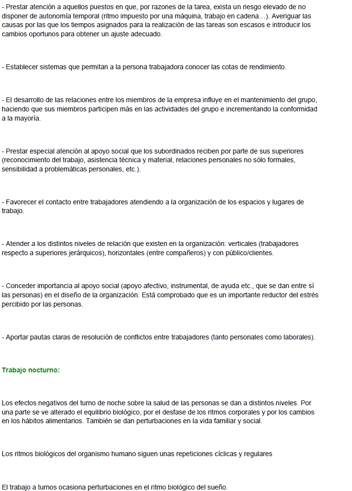 – Distribución del tiempo de trabajo – Aquellas que puedan ser identificadas en función de las características del puesto de trabajo.