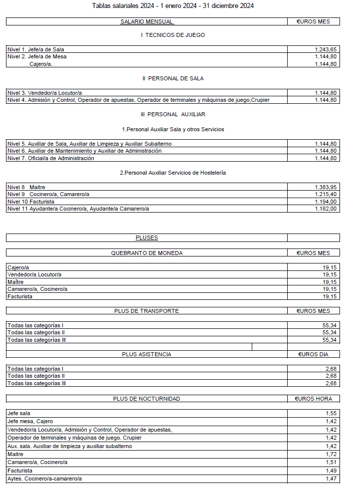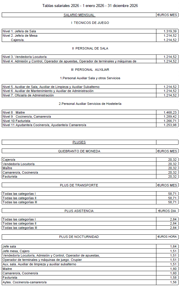 El personal al servicio de las salas de bingo de la provincia de Alicante se clasifica en tres grupos profesionales:
