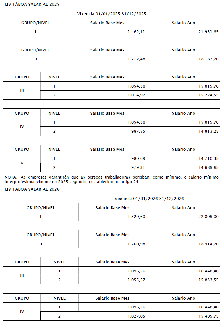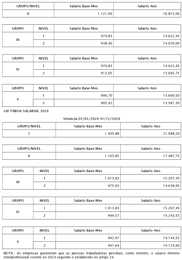 ANEXO I.- TÁBOAS SALARIAIS CONFORME AO PREVISTO NO ARTIGO 16.