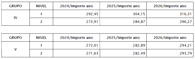 Ao fin de facilitar o cumprimento do previsto no parágrafo anterior naqueles supostos nos que proceda, achégase ao presente Convenio, identificado como Anexo III o cálculo correspondente a cada grupo e nivel profesional.