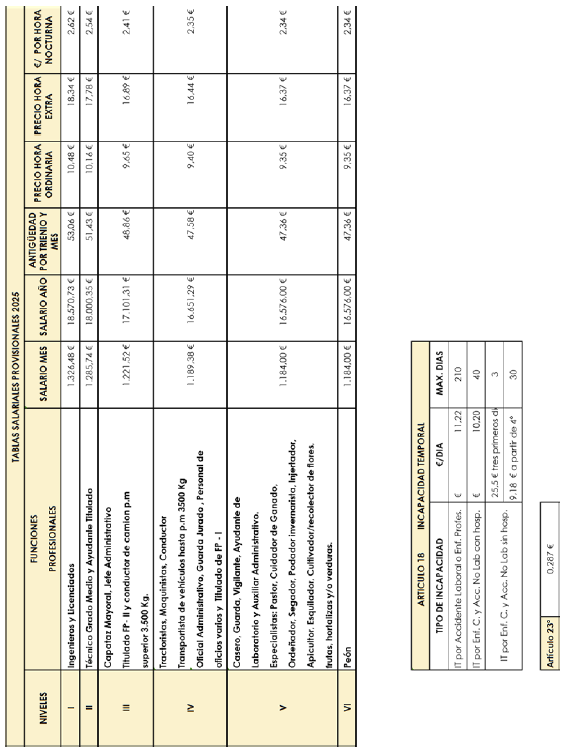 Al personal con contrato temporal de cualquier modalidad, bien sea de contratación directa o a través de un contrato de puesta a disposición a través de una ETT, que sea dado de alta en el Sistema Especial Trabajadores Cuenta Ajena Agrarios y se le cotice por jornadas reales, se le abonará un complemento mensual denominado «complemento de inactividad» del 20 % del salario base de su categoría por cada día de inactividad.