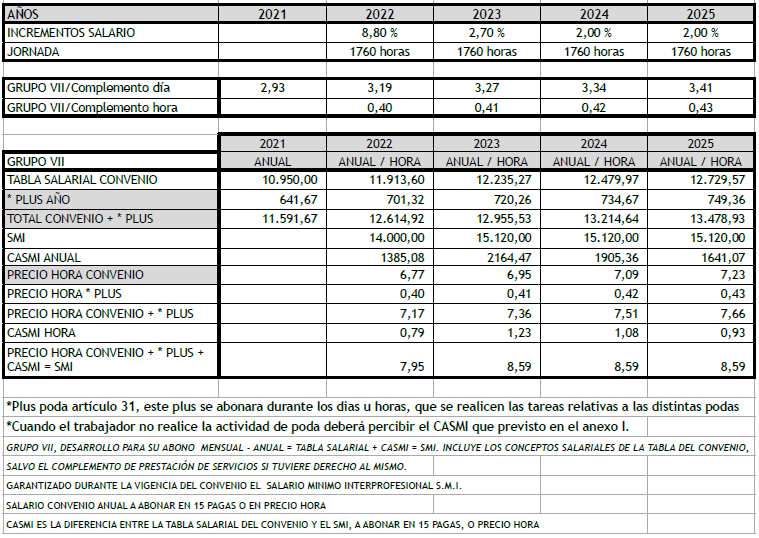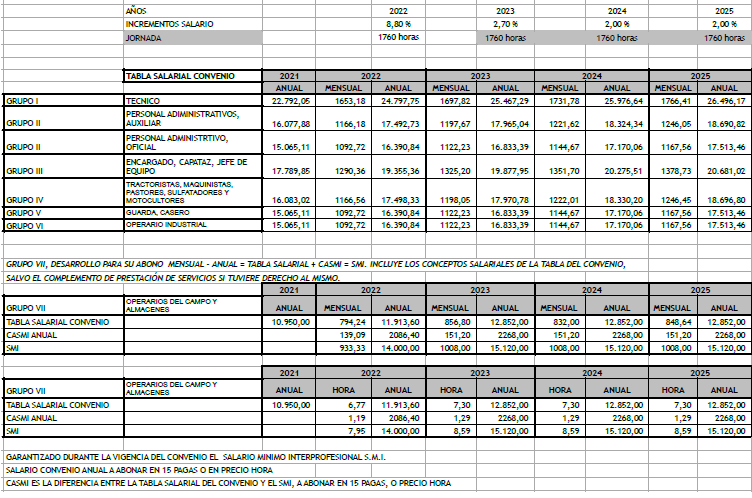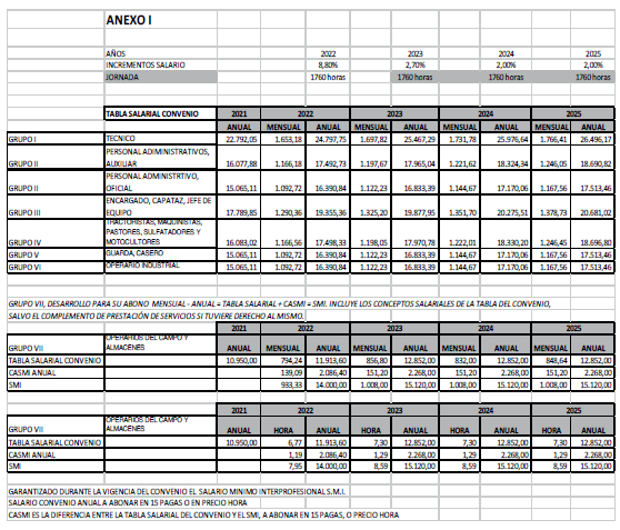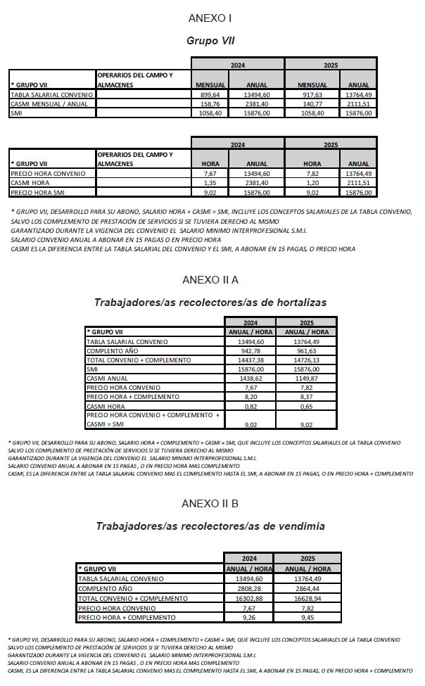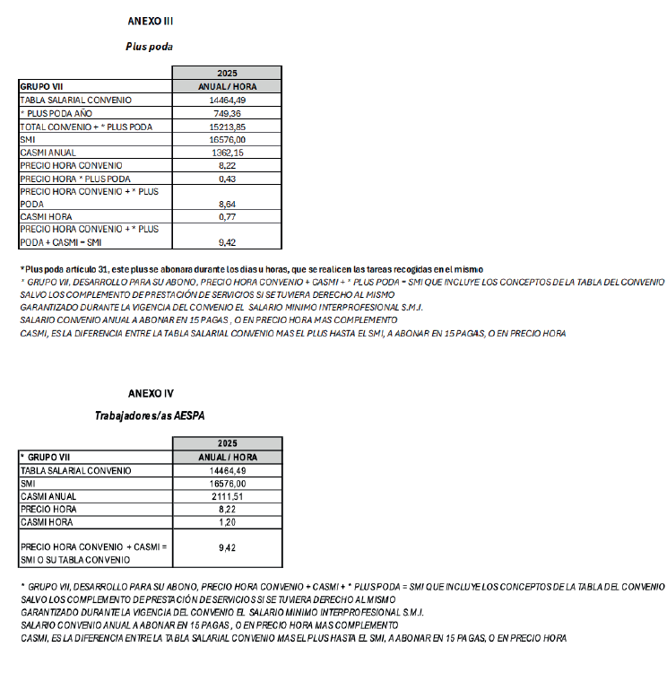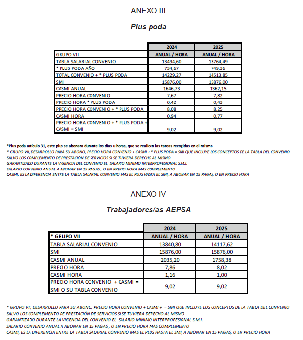 Estas nuevas tablas se incorporan al texto íntegro del convenio colectivo. Las tablas salariales para el resto de categorías para el año 2025 no afectadas por el salario mínimo interprofesional del presente año son las publicadas BOPZ núm. 132, de 11 de junio de 2024.
