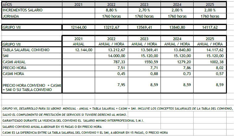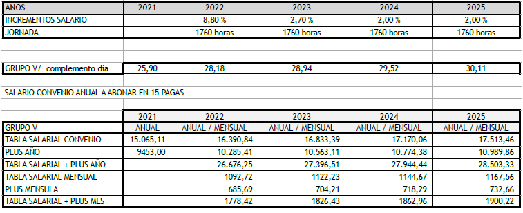 Estas nuevas tablas se incorporan al texto íntegro del convenio colectivo.