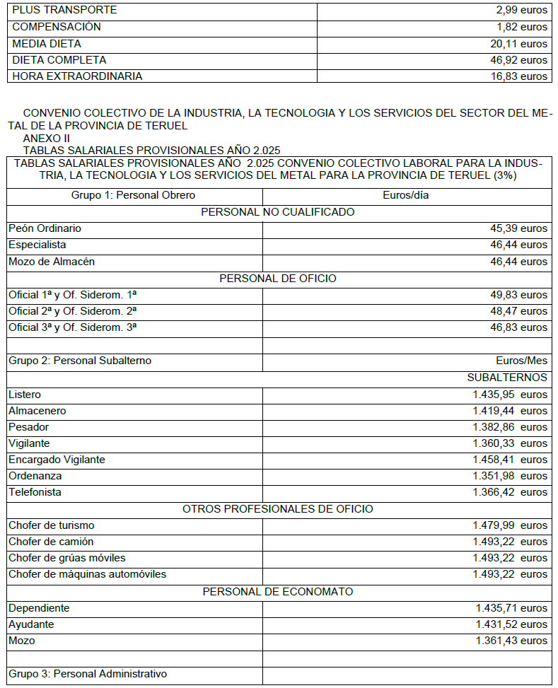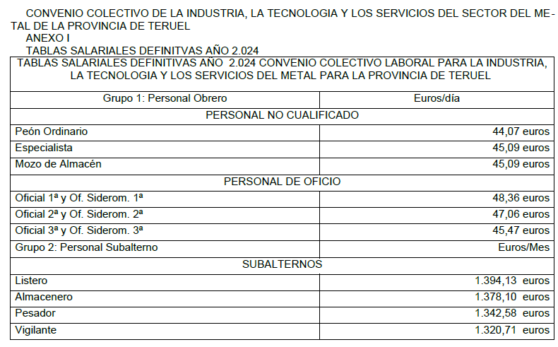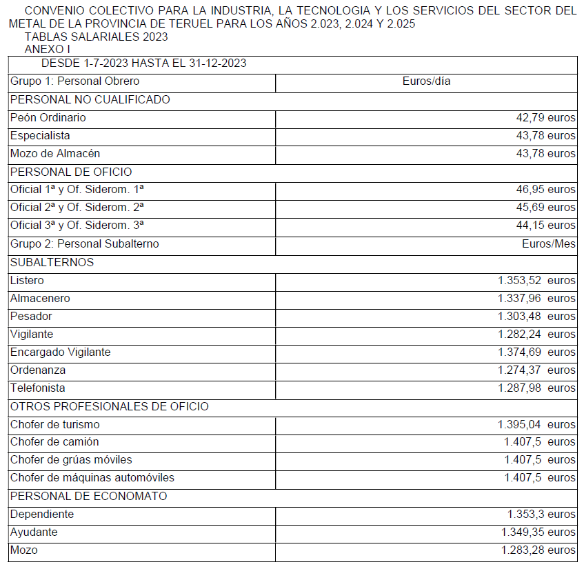 CONVENIO COLECTIVO DE LA INDUSTRIA, LA TECNOLOGIA Y LOS SERVICIOS DEL SECTOR DEL METAL DE LA PROVINCIA DE TERUEL PARA LOS AÑOS 2.023, 2.024 Y 2.025