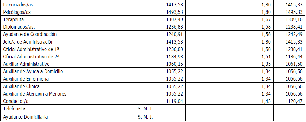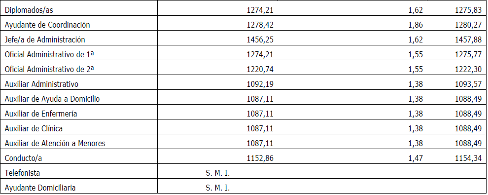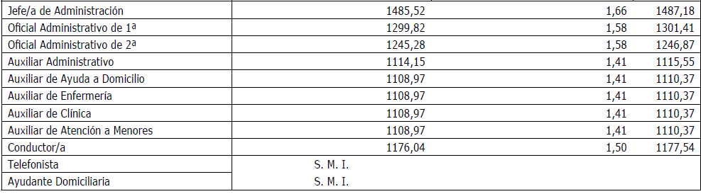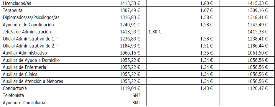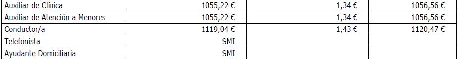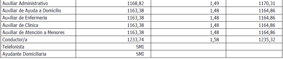 Para esta categoría de Ayudante Domiciliaria, su retribución será la equivalente al SMI de cada uno de los años de la vigencia del convenio, será la Comisión Paritaria la que establezca la retribución aplicable en el mes siguiente a la modificación por parte del Gobierno del SMI.