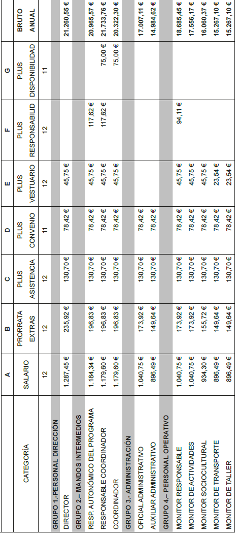 Se establece un plus de vestuario para la conservación del mismo, que desde el 1 de septiembre de 2018 hasta el 31 de agosto de 2019 es el reflejado en la tabla anexa en la columna E de carácter mensual, por 12 mensualidades.