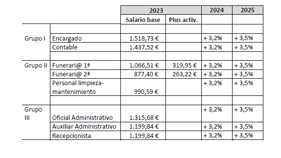 – Mantenimiento de instalaciones y almacenes – Excepcionalmente, limpieza de las instalaciones y almacenes, en caso de necesidad En esta categoría o nivel se encuadran también los operarios de cementerios Los Conductores Funerarios de 2ª que acrediten dos años de tiempo efectivo -excluidos los períodos de Incapacidad Temporal, suspensión del contrato, excedencias, aún las forzosas, etc.- en esa categoría, ascenderán a la categoría de Conductor Funerario de 1ª, computando, a estos efectos, el tiempo anterior que justifiquen documentalmente haber prestado en tal categoría, en su Empresa o en cualquier otra Empresa del sector.