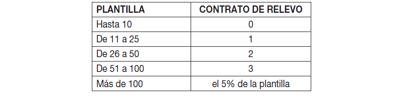 El número de contratos de relevo a suscribir al que se obliga a las empresas será proporcional a su número de trabajadores de acuerdo con la siguiente escala:
