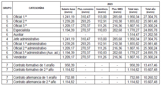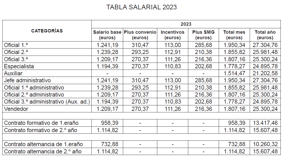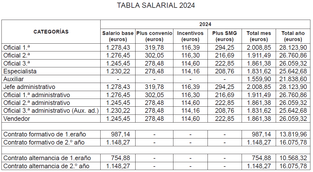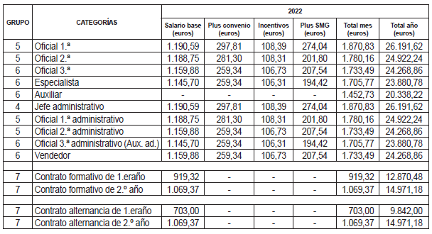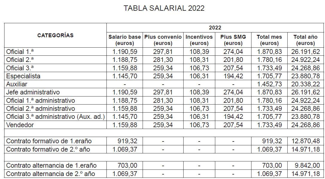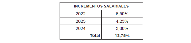 -La subida total de las tablas salariales establecida en el Convenio Colectivo para los años 2022, 2023 y 2024 fue del 13,75%, conforme al siguiente cálculo: