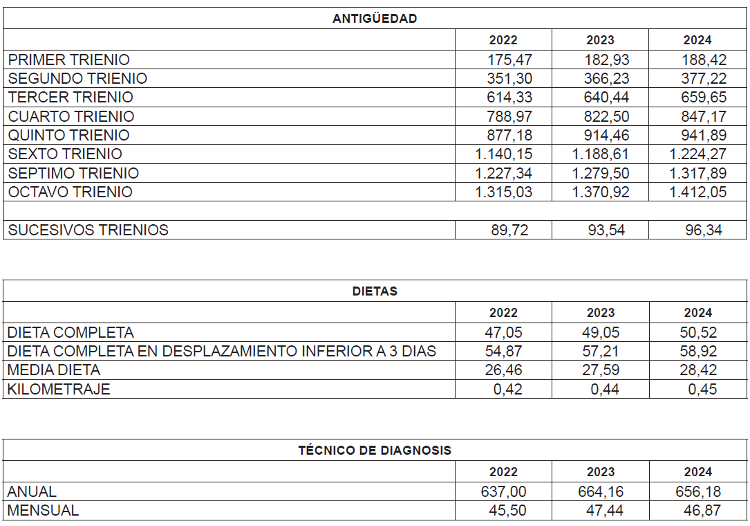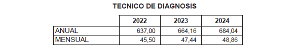 Igualmente, en la tabla referente a Técnico de Diagnosis, la cuantía anual y mensual respecto del referido año 2024 estaba mal calculada.