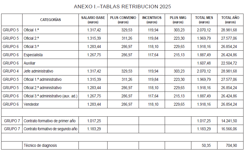 REVISIÓN SALARIAL DEL CONVENIO COLECTIVO PARA TALLERES DE REPARACIÓN DE VEHÍCULOS DE LA COMUNIDAD FORAL DE NAVARRA PARA EL AÑO 2025.