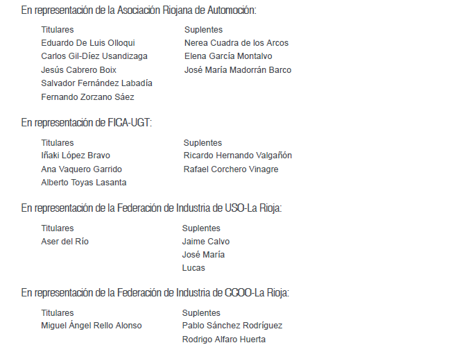 En la ciudad de Logroño, siendo las diez horas del día veinticinco de febrero de dos mil veintiséis, se reúnen, en los salones de la Federación de Empresas de La Rioja, los siguientes señores: Eduardo De Luis Olloqui, Jesús Romero Arnedo, Carlos Gil-Diez Usandizaga, Jesús Cabrero Boix y Salvador Fernández Labadia en representación de la Asociación Riojana de Automoción (ARIAUTO); Alberto Toyas Lasanta, Iñaki López Bravo y Juan Carlos Alfaro Sánchez en representación de UGT-FICA La Rioja; José Ignacio Garrido López, en representación de la Federación de Industria de USO y Miguel Ángel Rello Alonso, en representación de la Federación de Industria CCOO, todos ellos componentes de la Comisión Paritaria del Convenio Colectivo de Trabajo para la actividad de ‘Talleres de Reparación, Mantenimiento e ITV, de Vehículos’ de la Comunidad Autónoma de La Rioja para los años 2022-2025.