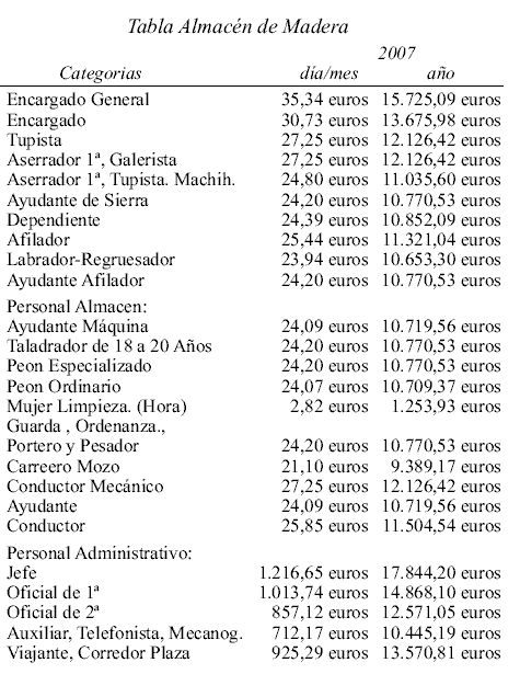 Primero: Revisar las tablas salariales para el periodo del 1 de enero al 31 de diciembre de 2007, en virtud de lo estipulado en el artículo 8 apartado C, del vigente Convenio Provincial del sector de la Madera.