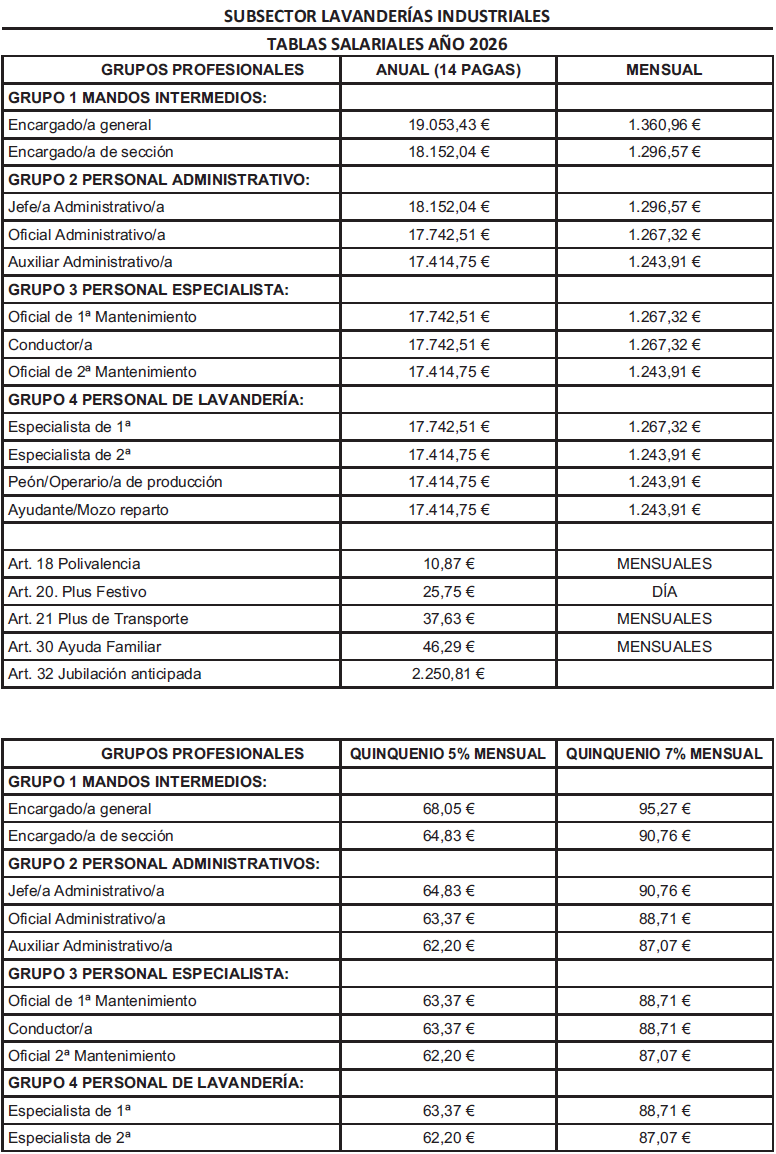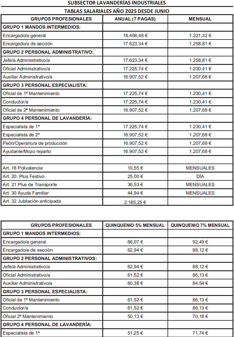 – Se establecen de forma diferenciada los grupos profesionales para los subsectores de «Tintorerías y Lavanderías» y los de las «Lavanderías Industriales».