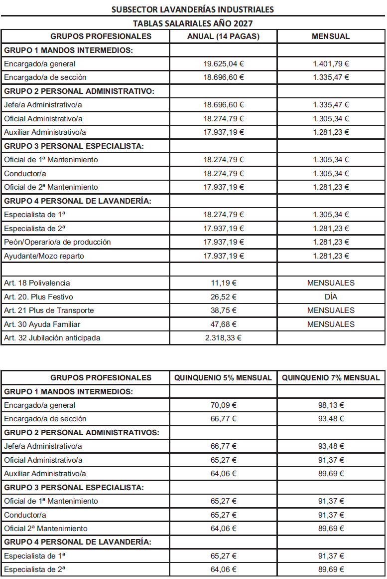 B) Grupos Profesionales del subsector de Lavanderías Industriales.