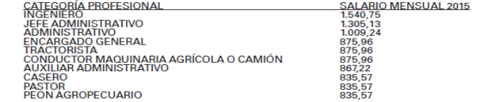 Resolución y Tablas Salariales 2016 para el Convenio Colectivo de Trabajadores Agropecuarios, Código 12000125011970.