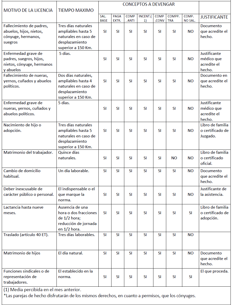 ANEXO I.- CUADRO DE PERMISOS Y LICENCIAS.