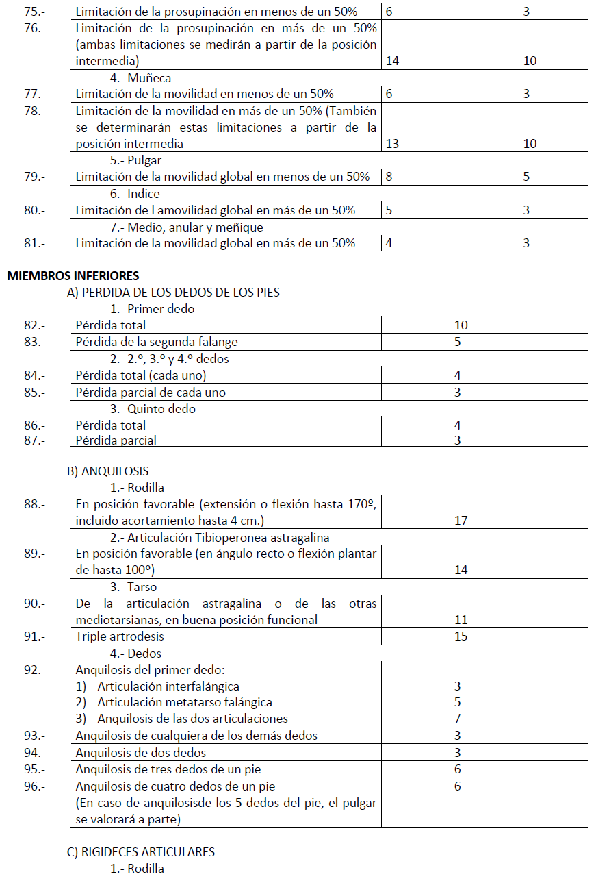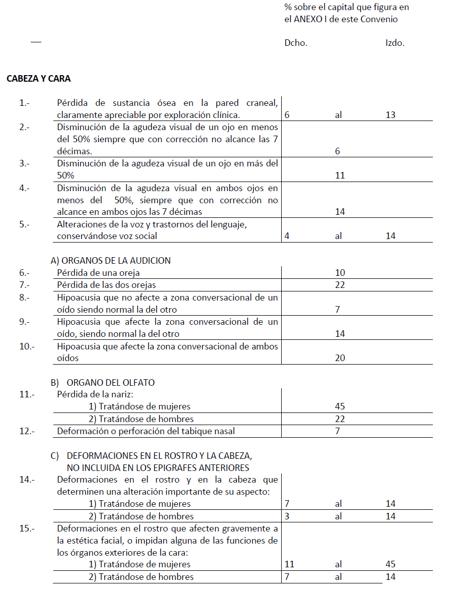 ANEXO IV.- POLIZA DE SEGURO, BAREMO DE LESIONES, MUTILACIONES Y DEFORMACIONES DE CARACTER DEFINITIVO Y NO INVALIDANTE.