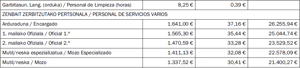 Además de las fiestas que se establecen en el calendario laboral elaborado por el Gobierno Vasco para la Comunidad Autónoma, se vacarán los siguientes medios días: 29 de junio, 24 y 31 de diciembre.