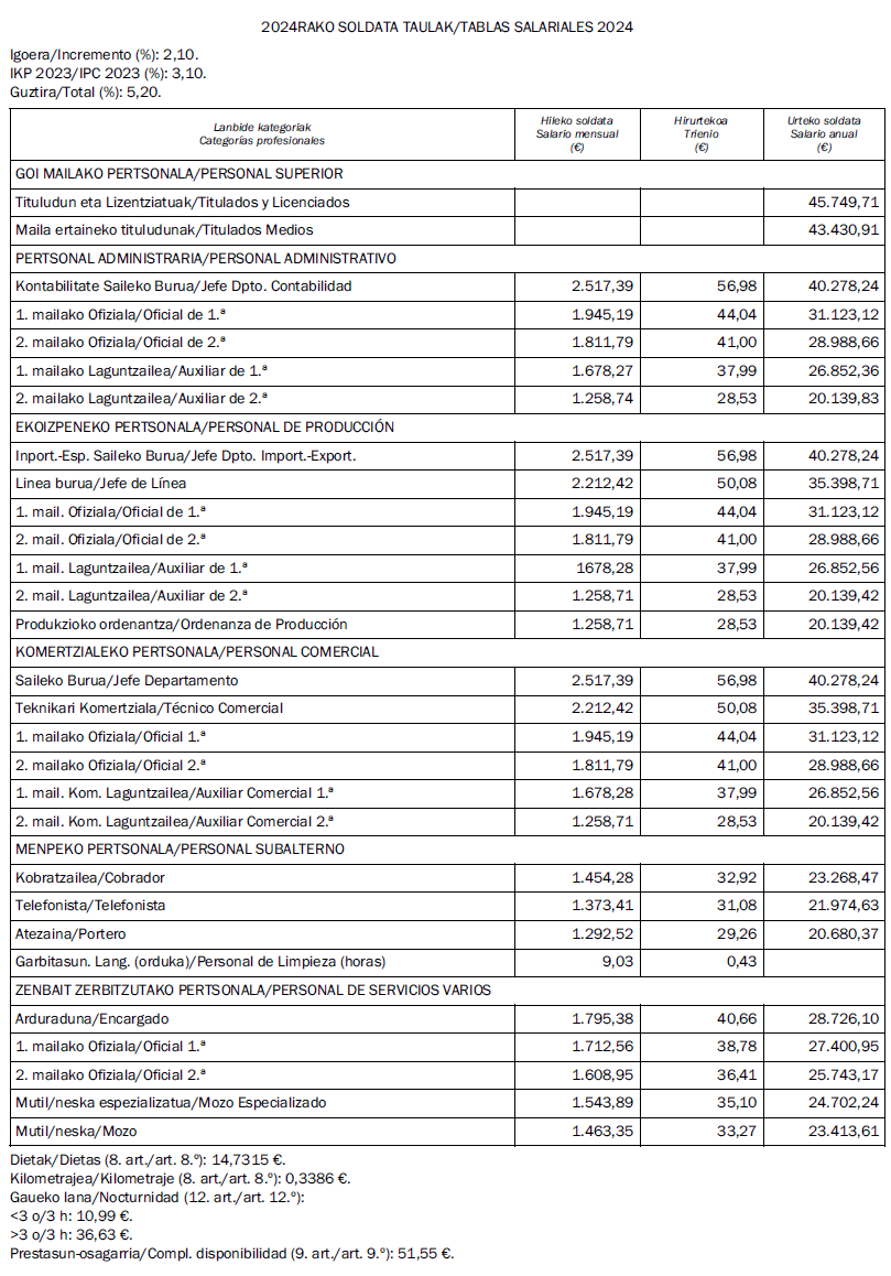 -Año 2024: 2,10% + IPC 2023 estatal.
