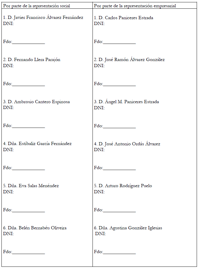 De una parte, en representación de la parte social, los siguientes miembros de la Federación de Empleados y Empleadas de los Servicios Públicos de la Unión General de Trabajadores de Asturias: