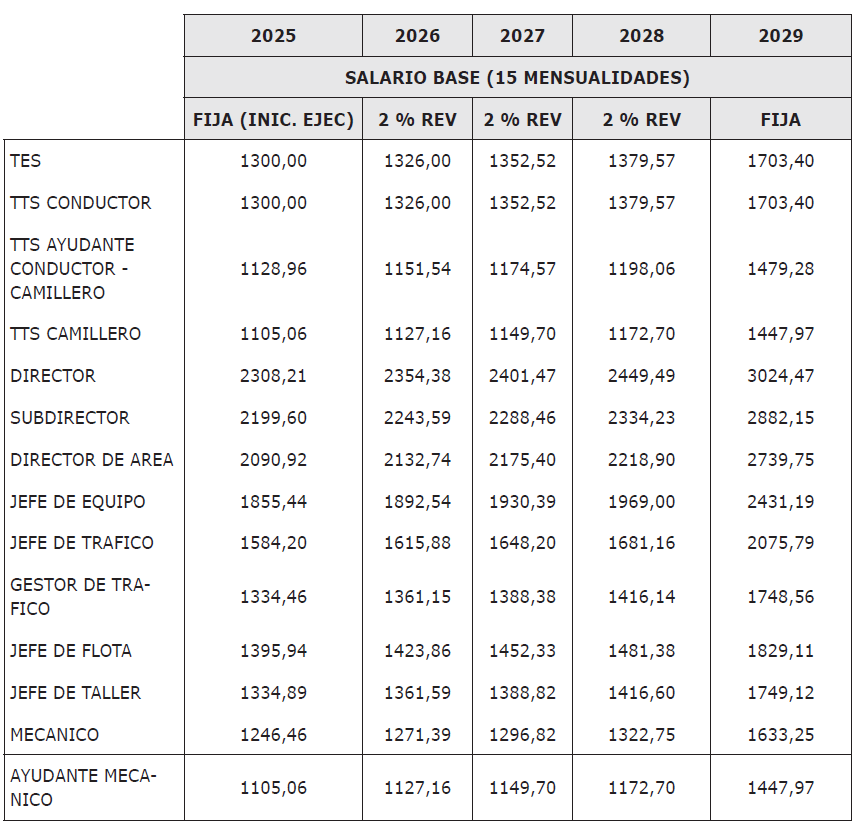 Si bien nos es posible diferenciar salarialmente dicha categoría respecto de la de TTS Conductor, las partes firmantes del presente convenio, se comprometen a la diferenciación salarial al alza en la negociación del próximo convenio, en base a la especialización formativa requerida.