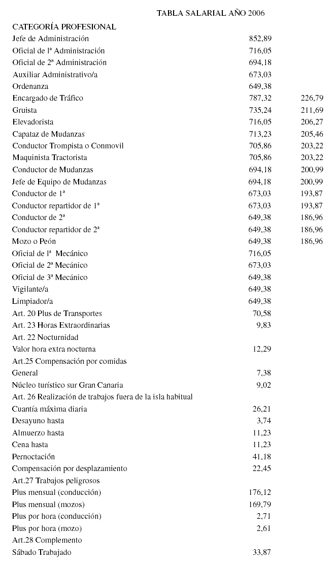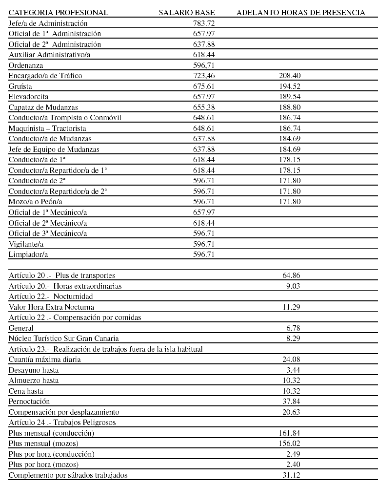 VISTA la solicitud presentada el día 28 de diciembre de 2004 para la inscripción del Convenio Colectivo del sector “TRANSPORTE DE MERCANCIAS POR CARRETERA DE LA PROVINCIA DE LAS PALMAS”, suscrito con fecha 15 de noviembre de 2004, de una parte por la representación de la empresa la Federación de Empresarios de Transporte, y de otra por Comisiones Obreras y Unión General de Trabajadores, en representación de los trabajadores, de conformidad con lo dispuesto en el art. 9.2 y 3 del Texto Refundido de la Ley del Estatuto de los Trabajadores, aprobado por Real Decreto legislativo 1/1995, de 24 de marzo (B.O.E. 29 de marzo), Real Decreto 1033/1984, de 11 de abril, sobre transferencias de funciones a la Comunidad Autónoma de Canarias, la disposición final primera del Decreto 29/1985, de 1 de agosto, sobre creación de Registro de Convenios Colectivos de Trabajo de la Comunidad Autónoma de Canarias y el art. 10.1. g), del Decreto 329/1995, de 24 de noviembre, por el que se aprueba el Reglamento Orgánico de la Consejería de Empleo y Asuntos Sociales, en su redacción dada por Decreto 138/2000, de 10 de julio, (B.O.C. n° 108, del 7/08/00), esta Dirección General,