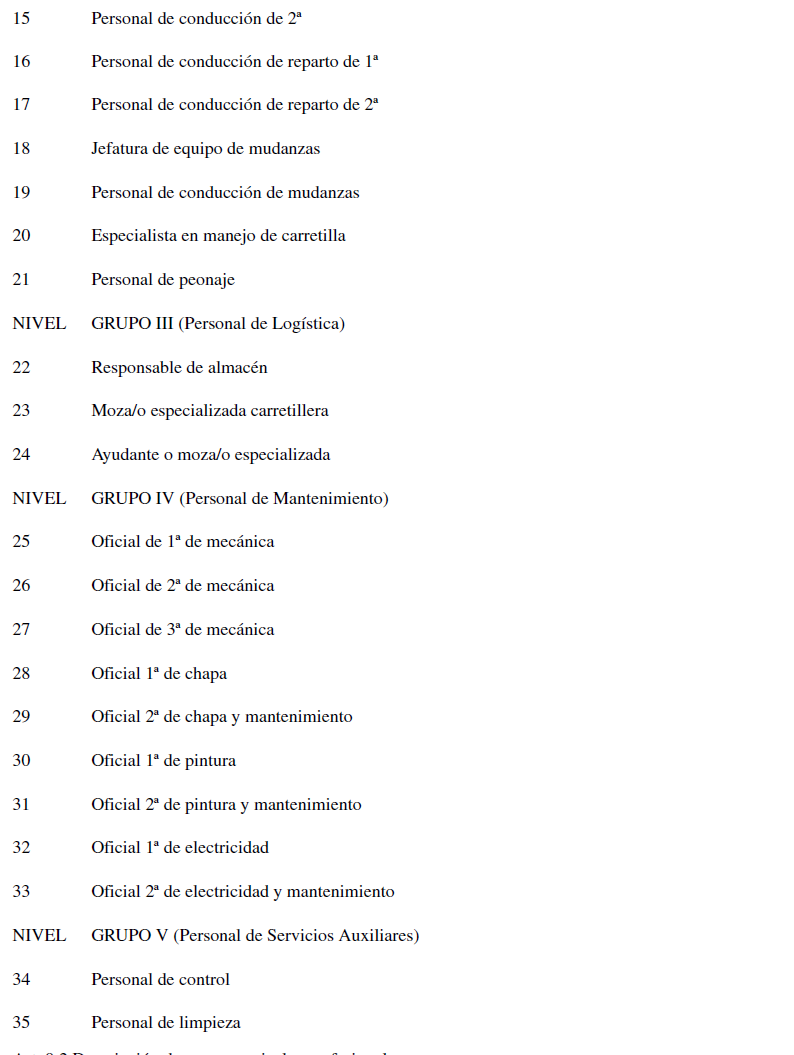 Elevadorista.- Es aquél/la trabajador/a que poseyendo el carnet reglamentario tiene la obligación de conducir y manipular elevadores de más de 10 toneladas ayudando a las reparaciones del mismo, siendo el/la responsable del vehículo.
