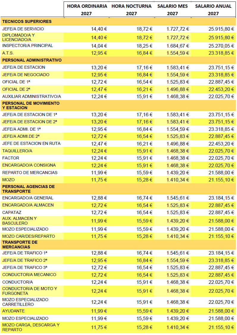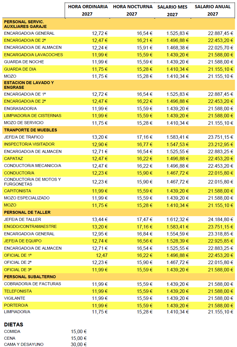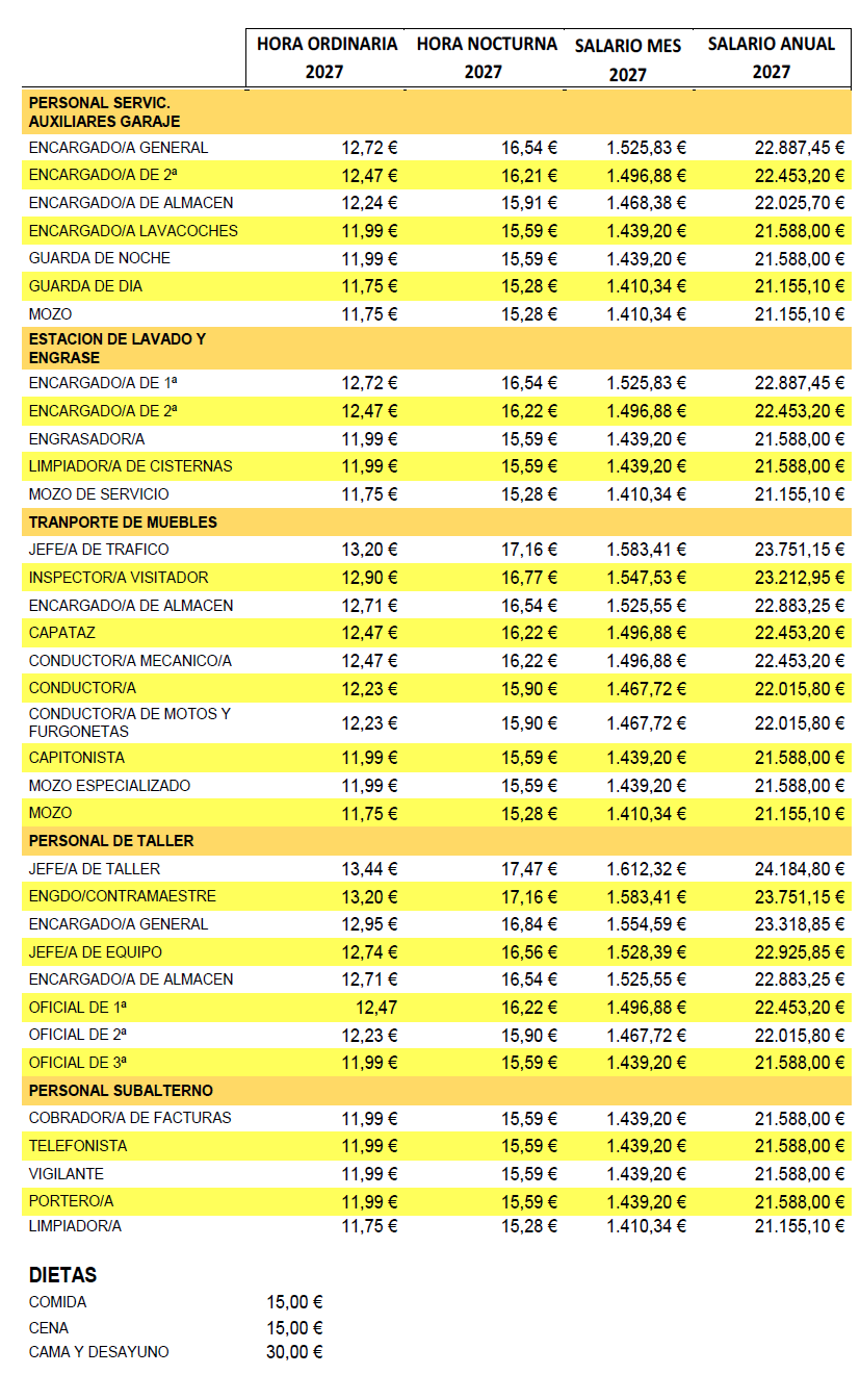 – Asimismo, consta para el año 2027 en la misma categoría de conductor/a mecánico/a como salario base la cantidad de 1.525,83 €; debiendo figurar 1.496,88 €.