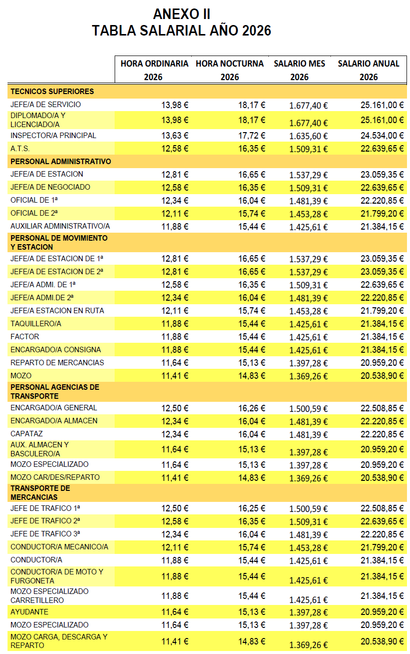 ANEXO II.- TABLA SALARIAL AÑO 2026.