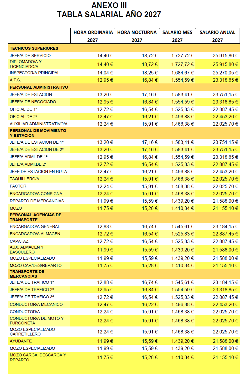 ANEXO III.- TABLA SALARIAL AÑO 2027.