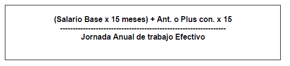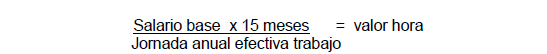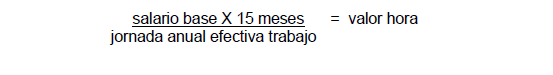 • Para el Cálculo del valor o precio de una hora ordinaria se aplicará la fórmula siguiente: