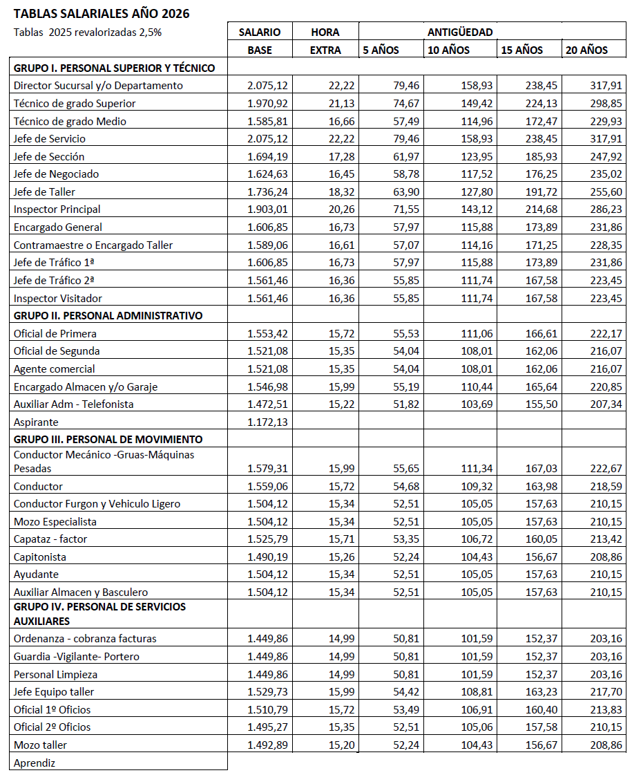 Dicho acuerdo establece proceder a la actualización y cierre definitivo de las tablas salariales para el año 2026, con efectos retroactivos al 1 de enero de 2026, siendo efectivas al mes siguiente de su publicación en el Boletín Oficial de la Provincia de Valencia.