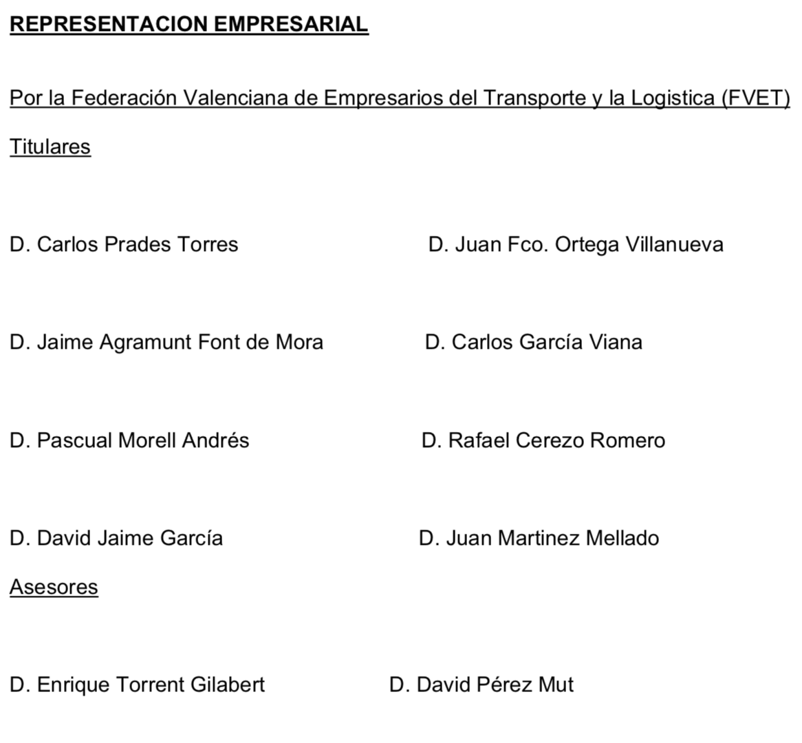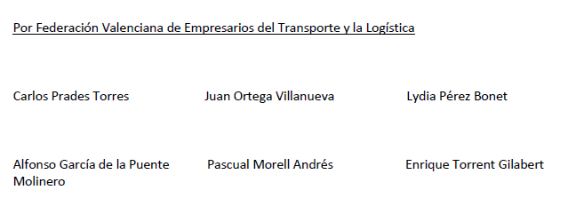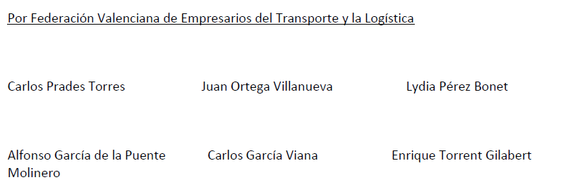 • Federación Valenciana de Empresarios del Transporte y la Logística (F.V.E.T.): Hernán Cortes nº 4- 2ª planta 46004.