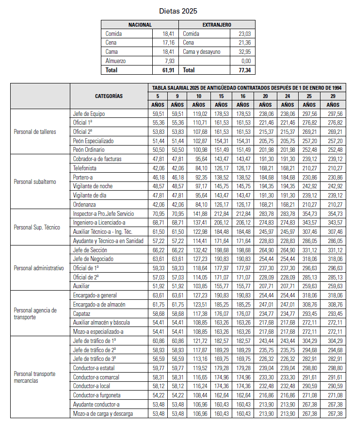 REVISIÓN DE TABLAS 2025 DEL CONVENIO COLECTIVO EXTRAESTATUTARIO PARA LA INDUSTRIA DEL TRANSPORTE DE MERCANCÍAS POR CARRETERA Y AGENCIAS DE ÁLAVA ACTA DE LA COMISIÓN PARITARIA (TABLAS, DIETAS Y OTROS CONCEPTOS 2025).