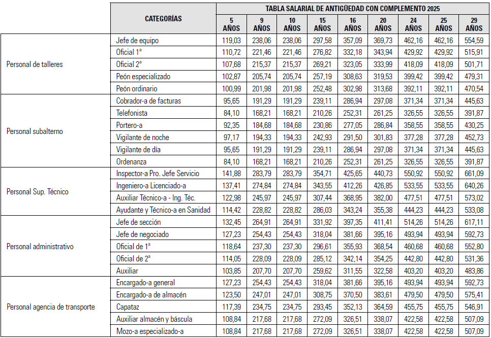 Acta de la comisión paritaria (subsanación errores tabla salarial de antigüedad con complementos 2025).