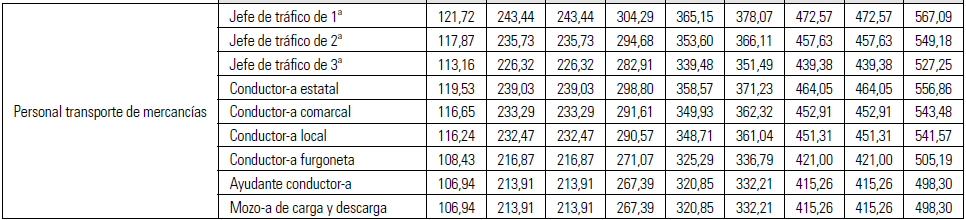 Revisión de tablas 2025 del convenio colectivo extraestatutario para la industria del transporte de mercancías por carretera y agencias de Álava.