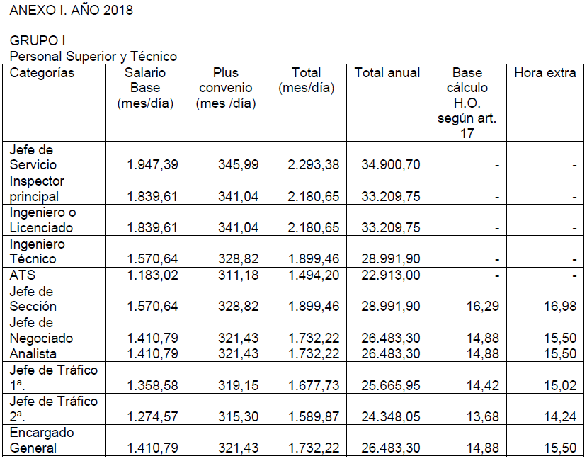 Los salarios correspondientes al año 2018 son los que figuran en las tablas del Anexo 1.