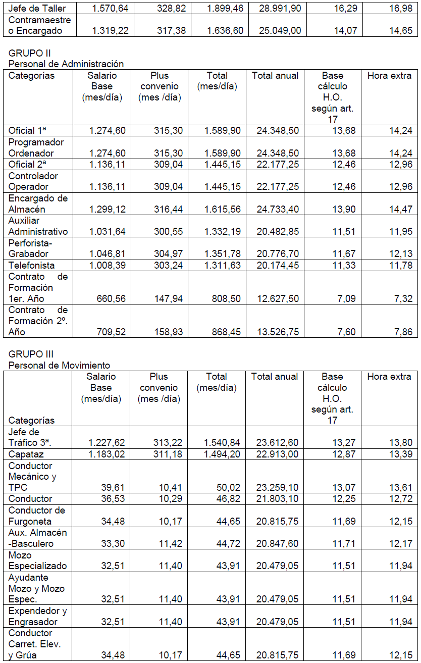 – Para el año 2019 las tablas salariales de 2018 y demás conceptos económicos que figuran en el anexo I, se incrementan en un 1,5%. Anexo II.